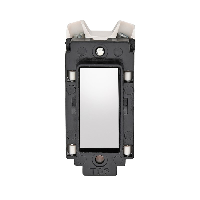 Fully Rated to 10A. Screw Fixed. Highly Polished Chrome Finish Rocker. Black Trim. 100W SBL LED Load.