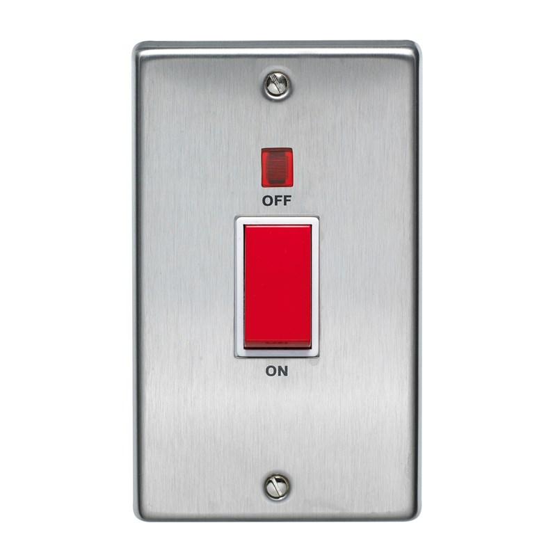 Fully Rated to 45A. Neon Indicator. Stainless Steel Finish.