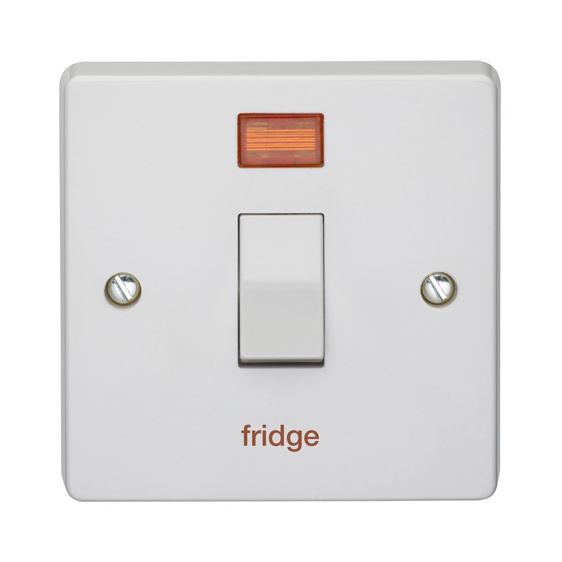 20A 1 Gang Double Pole Control Switch With Neon Printed 'Fridge'