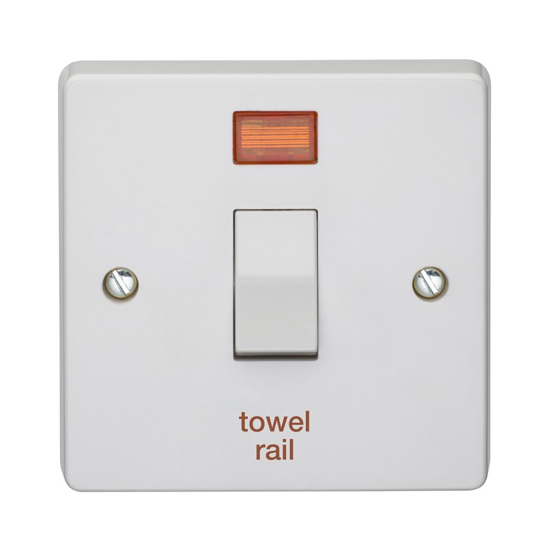 20A 1 Gang Double Pole Control Switch With Neon Printed 'Towel Rail'