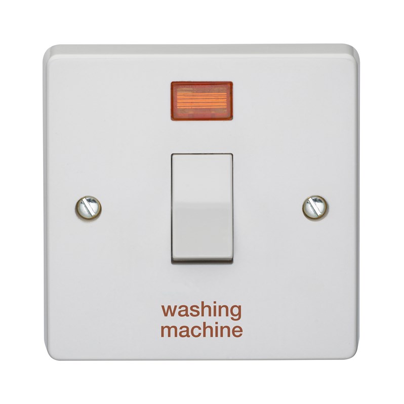 20A 1 Gang Double Pole Control Switch With Neon Printed 'Washing Machine'