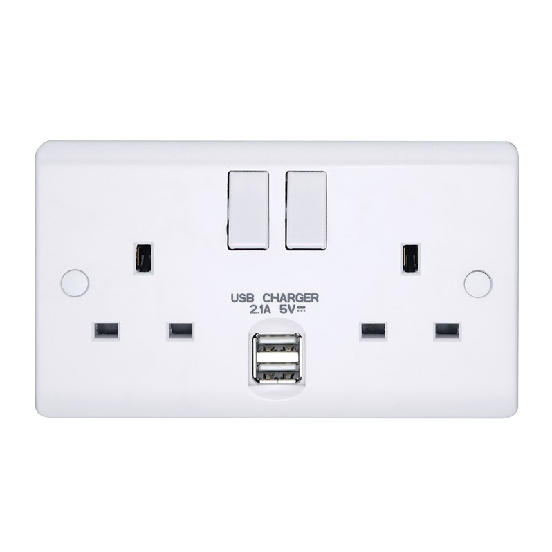 13A 2 Gang Double Pole Switched Socket With Dual 2.1A USB s